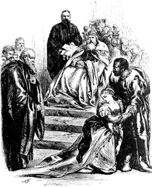 如果有人用这种邪恶的手段引诱你的女儿,使她丧失了自己的本性,使你丧失了她,那么无论他是什么人,你都可以根据无情的法律,照你自己的解释给他应得的严刑;即使他是我的儿子,你也可以照样控诉他。