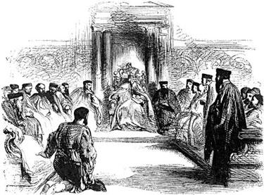 请你们差一个人到马人旅馆去把这位小姐接来,让她当着她的父亲的面告诉你们我是怎样一个人。要是你们根据她的报告,认为我是有罪的,你们不但可以撤销你们对我的信任,解除你们给我的职权,并且可以把我判处死刑。