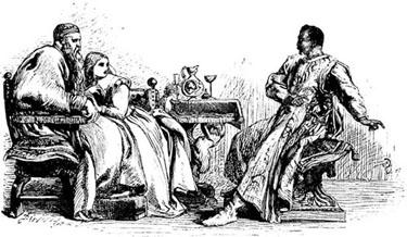 威严无比、德高望重的各位大人,我的尊贵贤良的主人们,我把这位老人家的女儿带走了,这是完全真实的;我已经和她结了婚,这也是真的;我的最大的罪状仅止于此,别的就不是我所知道的了。我的言语是粗鲁的,一点不懂得那些温文尔雅的辞令;因为自从我这双手臂长了七年的膂力以后,直到最近这九个月以前,它们一直都在战场上发挥它们的本领;对于这一个广大的世界,我除了冲锋陷阵以外,几乎一无所知,所以我也不能用什么动人的字句替我自己辩护。可是你们要是愿意耐心听我说下去,我可以向你们讲述一段质朴无文的、关于我的恋爱的全部经过的故事;告诉你们我用什么药物、什么符咒、什么驱神役鬼的手段、什么神奇玄妙的魔法,骗到了他的女儿,因为这是他所控诉我的罪名。